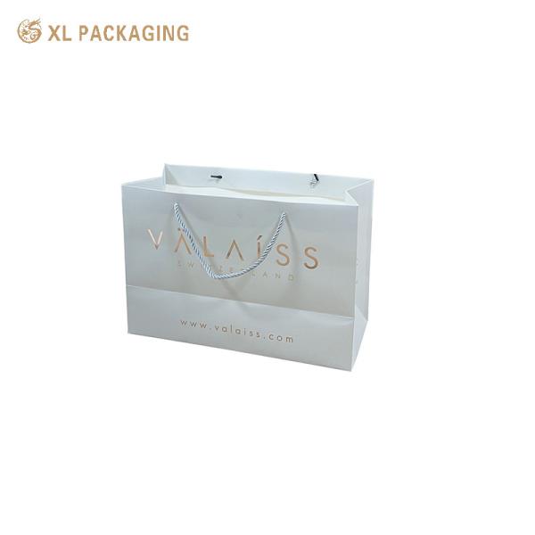 XL Packaging Custom Logo Hard White Art Paper Bags Luxury Shopping Packaging With Die-Cut Handles Scratch-Resistant Coating Easy Carry Design Durable Images |